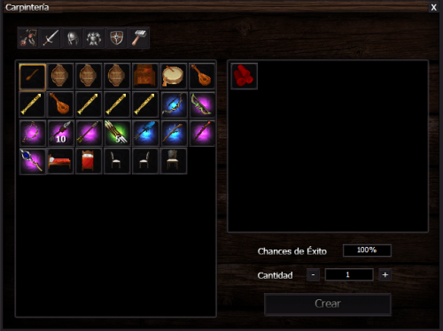La construcción de ítems y objetos a partir de leños de madera se denomina Carpintería, y es uno de los oficios que se desarrollan en el mundo de Imperium.