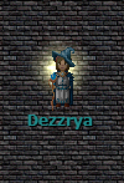 La historia de esta gnoma comienza – o al menos, es lo que ella recuerda – cuando a la edad de siete años fue encontrada por un elfo llamado Eldrin. La caravana en la que viajaba con sus padres transitaba por los campos abiertos rumbo a la ciudad neutral de Rinkel, en el continente de Oderon, cuando fue atacada por unos oscuros y despiadados seres, al menos ella así recuerda aquellos rostros. Este encuentro resultó en el secuestro y asesinato de la mayoría de los miembros de la caravana; entre ellos sus padres. Para la fortuna de la gnoma, Eldrin, un elfo y respetado mago miembro de la Armada Imperial, se encontraba en una misión de reconocimiento en los campos entre la ciudad de Ullathorpe, bajo dominio Imperial, y la neutral Rinkel. Al encontrar a la pequeña entre los restos de la caravana, decidió protegerla y criarla bajo su cuidado. Desde muy temprana edad, Dezzrya sintió la soledad de haber perdido a sus padres, y aunque Eldrin le brindó el amor de un padre, nunca logró llenar completamente ese hueco en su corazón.