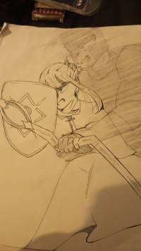 Al llegar, Ezhereon buscaba recuerdos de tiempos pasados. Sus dedos recorrieron la madera desgastada hasta que se detuvieron en un objeto familiar: su antiguo escudo de la Armada Imperial, decorado con el emblema del Imperio y adornado con cientos de rayones, marcas y abolladuras de décadas de uso. El escudo poseía una gran resistencia mágica, legado de sus días de gloria en el campo de batalla, de sus mil y una aventuras con sus compañeros, de sus conquistas y de sus pérdidas, recordando absolutamente todo su trayecto por la Armada Imperial. Con un suspiro, Ezhereon retiró el escudo, sintiendo el peso de las memorias que llevaba consigo, y se lo extendió a Felxzhery. Le advirtió sobre la nueva responsabilidad que conlleva portar los colores del Imperio y le dijo que el camino que él había recorrido ahora se bifurca en ella.