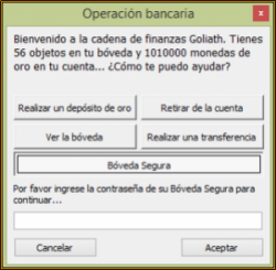 • Hacer click derecho en el banquero y comerciar con el mismo. Debes seleccionar la opción “Bóveda Segura”.