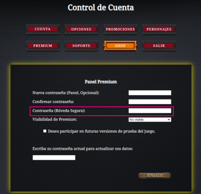 La bóveda segura es igual que la Bóveda, con la diferencia que puede ser bloqueada con una clave única, de cuatro números, que se genera desde la sección Premium del panel de control de cuenta. Esta bóveda es exclusiva para usuarios Donador.