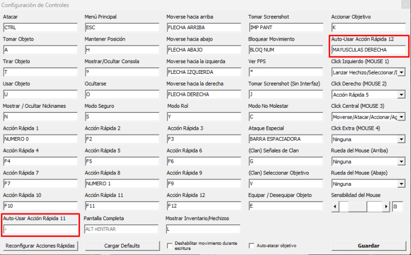 - Nota 3: Se pueden setear varias teclas de auto-usar pero solo puede haber una activa, es decir, si tenes azules y rojas en las acciones rápidas auto-usar no podés potear ambas a la vez.