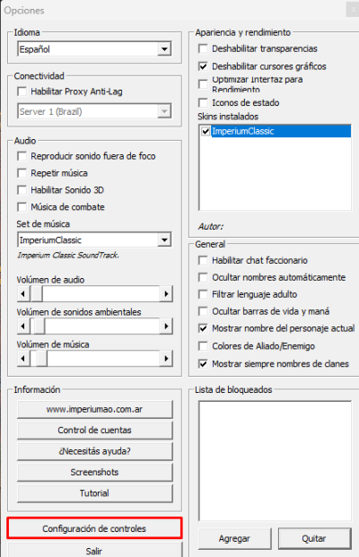 - Dirigirnos a Menú>Opciones>Configuración de controles.